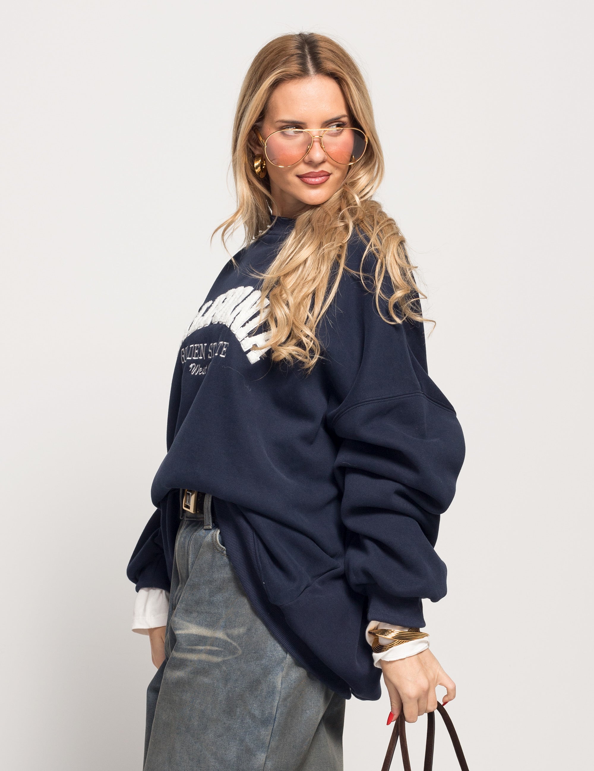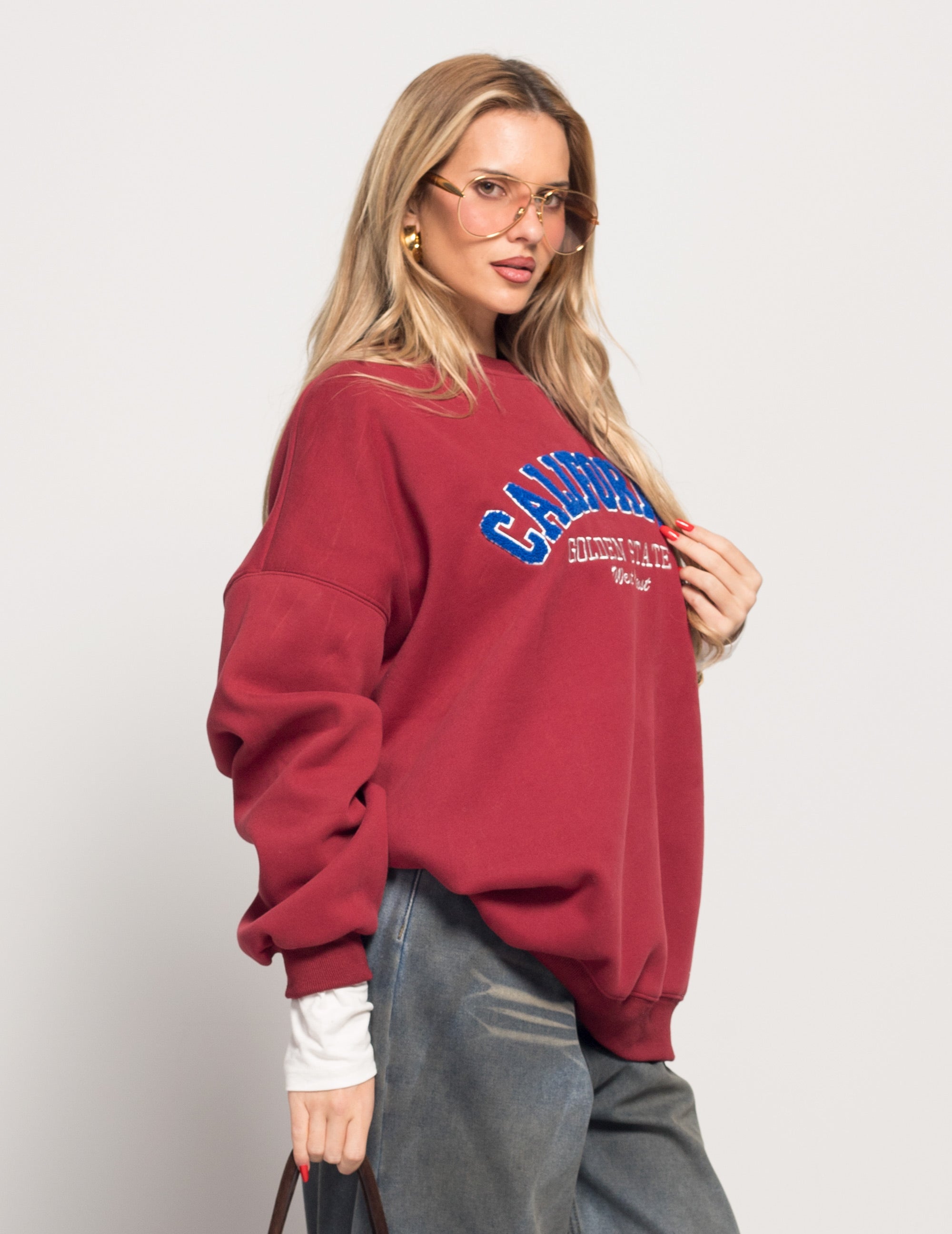 Sweat De Felpa Oversize Cardada California Bordado