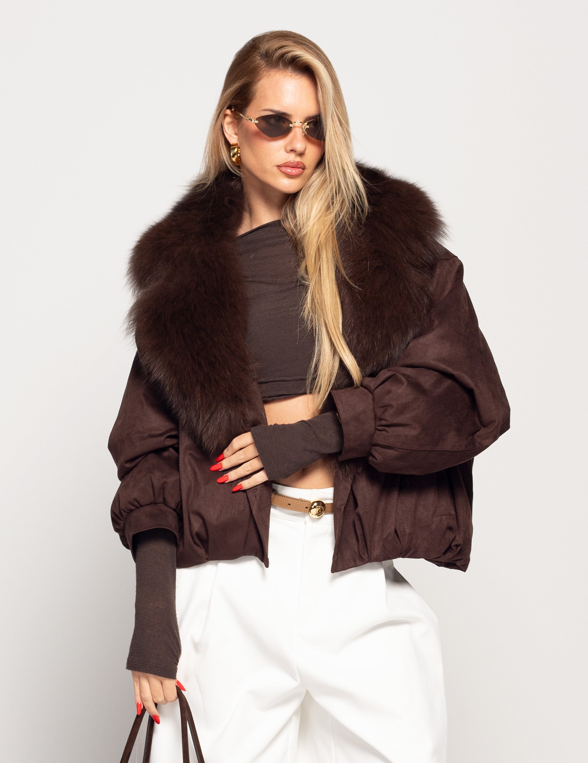 Blusão Ti.Amo Glamour De Penas De Ganso Pêlo Raposa Com Cinto