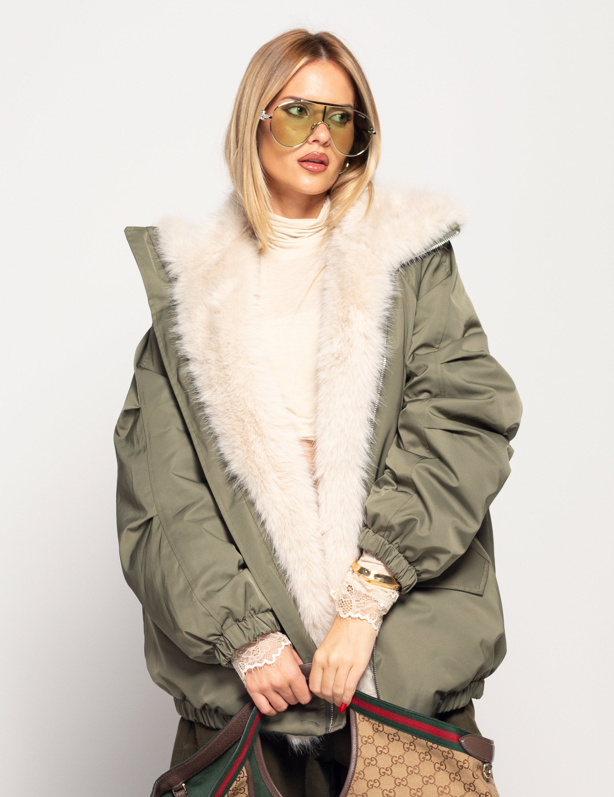 Blusão Ti.Amo De Penas De Ganso Gola Pêlo Sintético