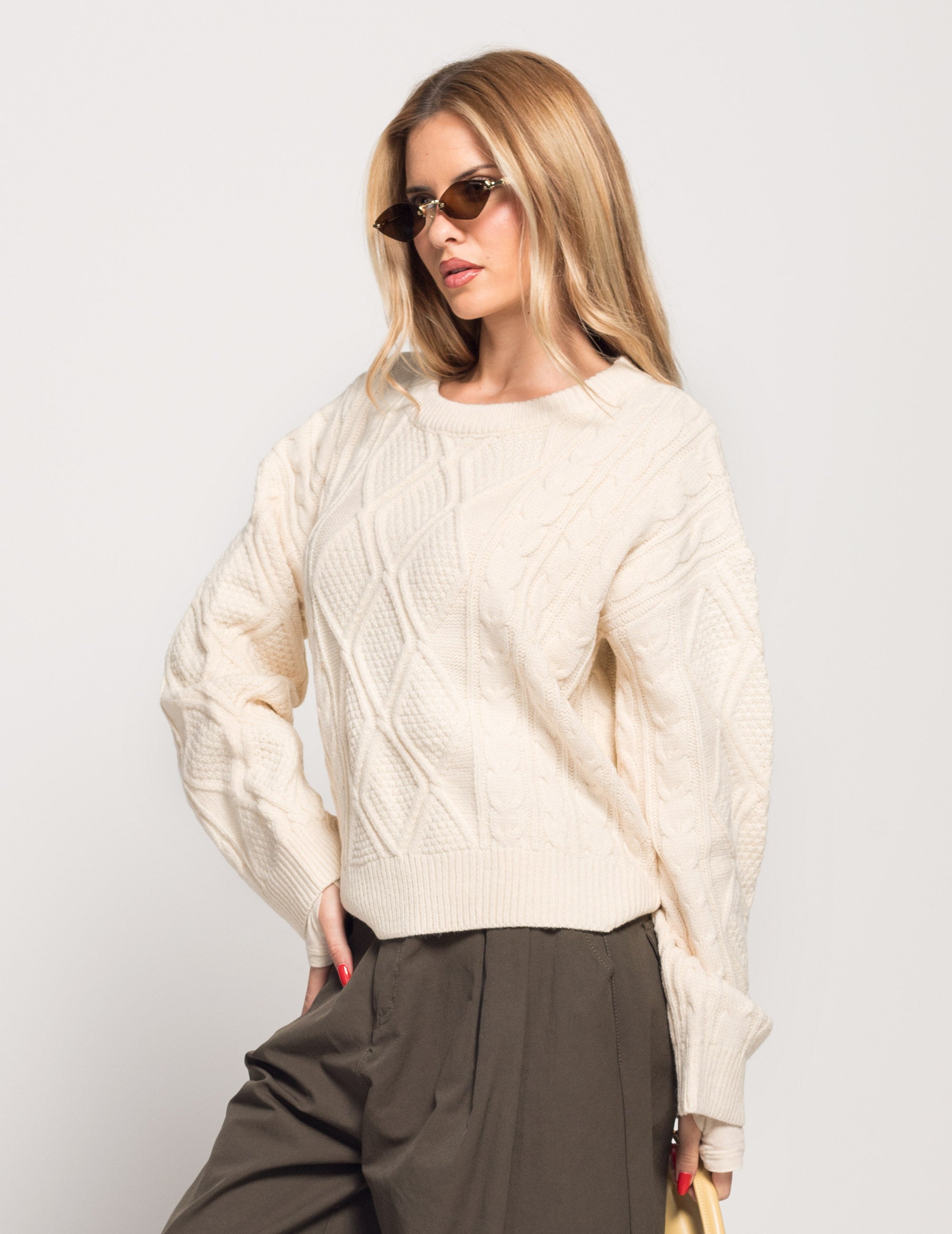 Camisola De Malha Detalhe Nervuras Gola E Bainha