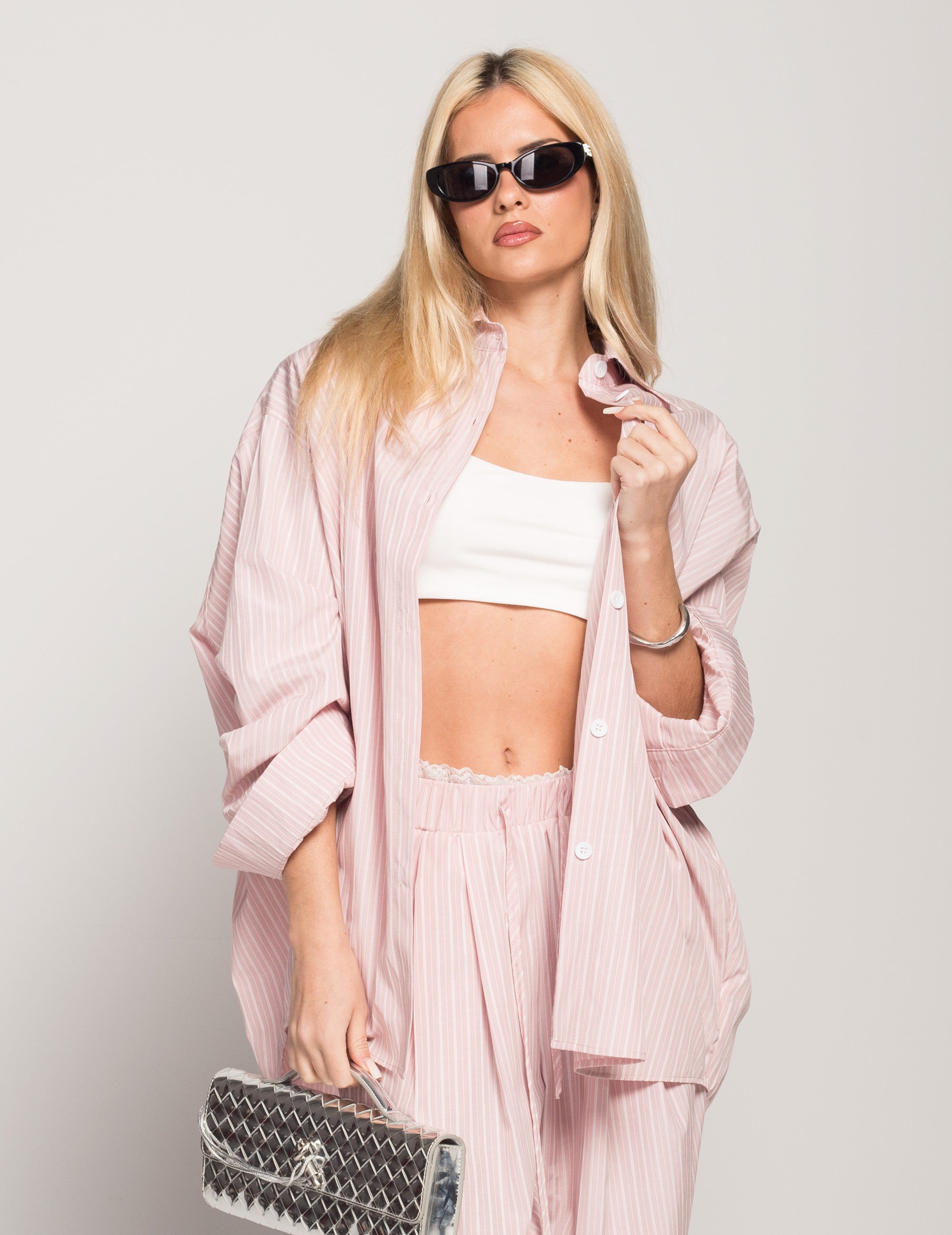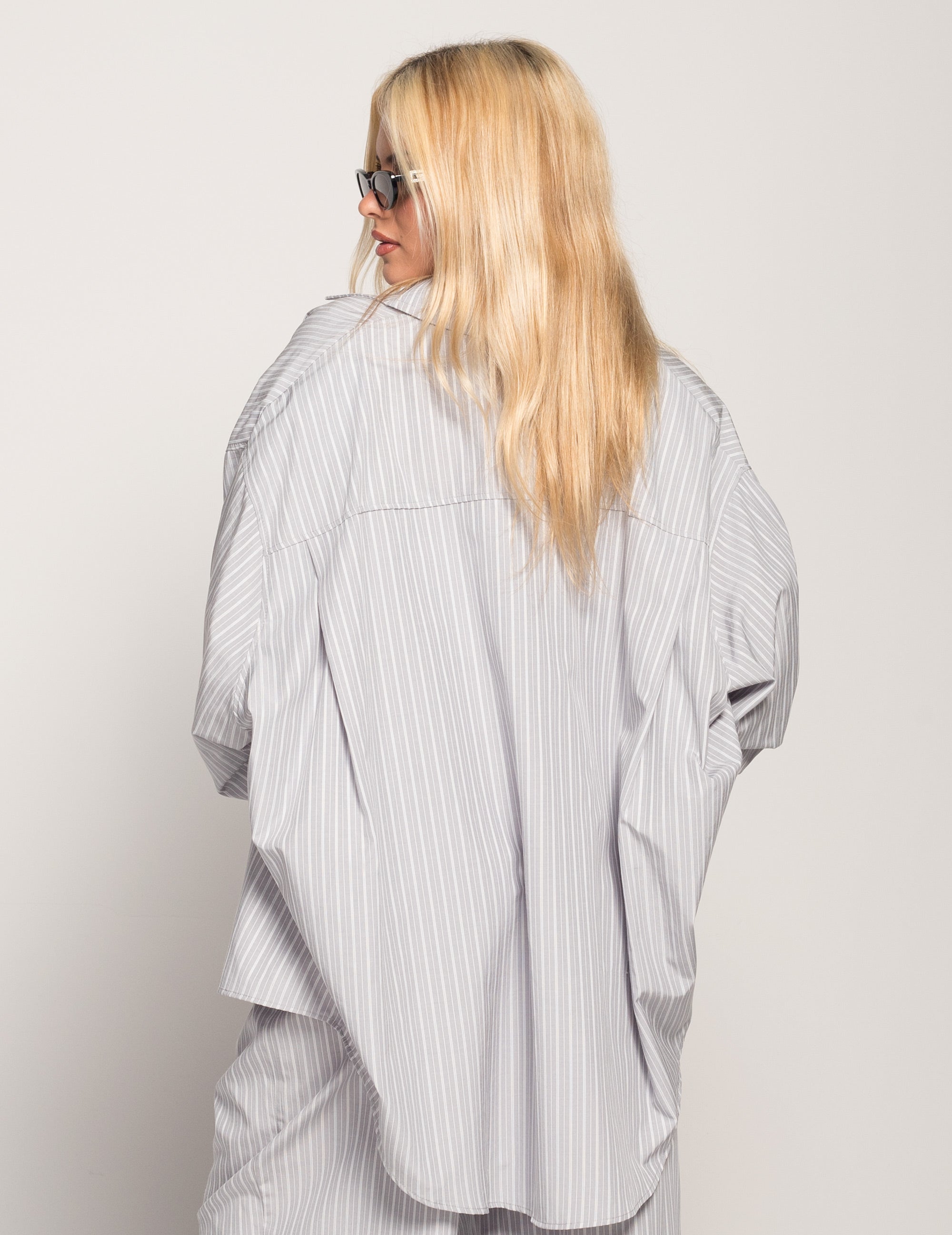 Camisa Oversize Com Riscas & Ombreiras