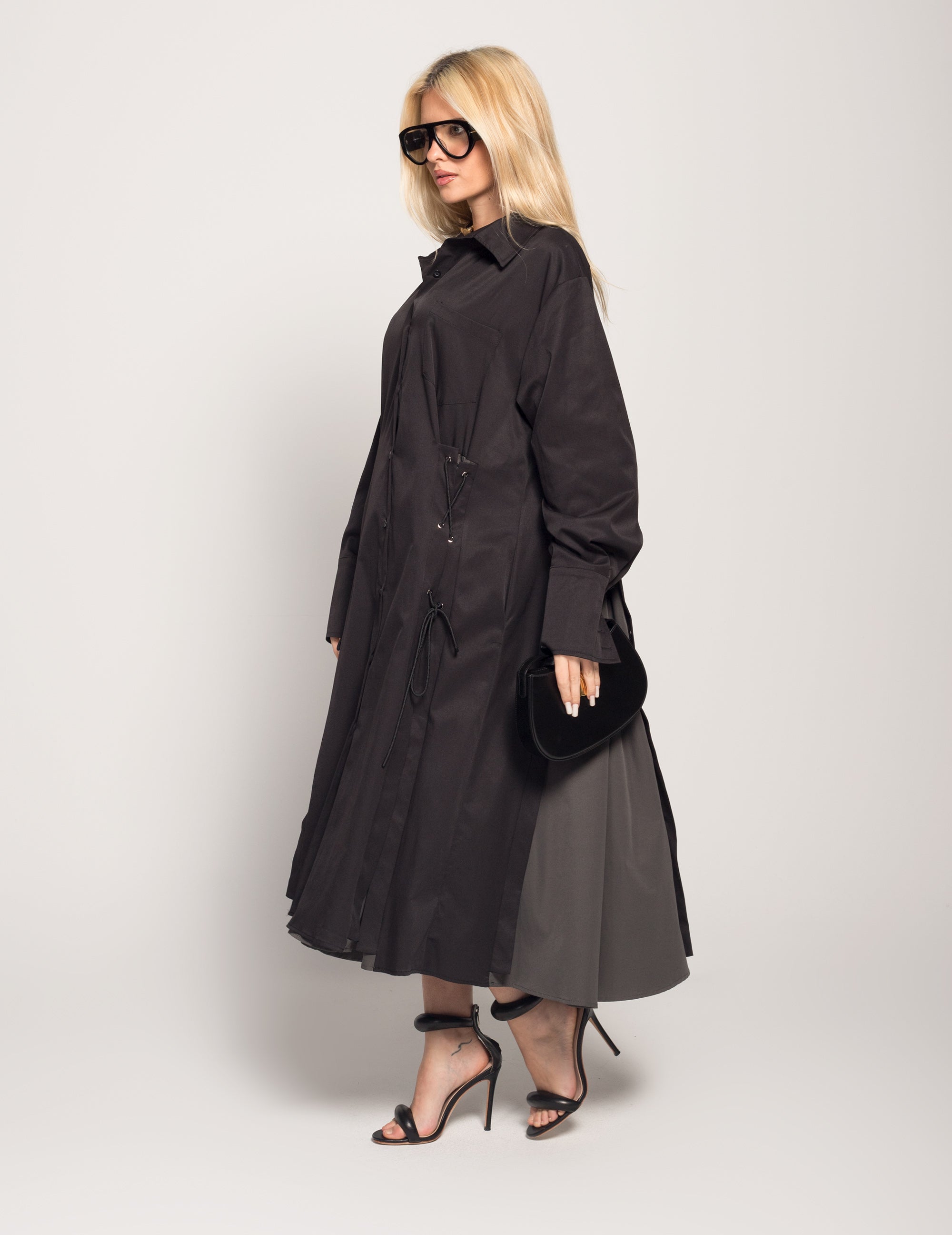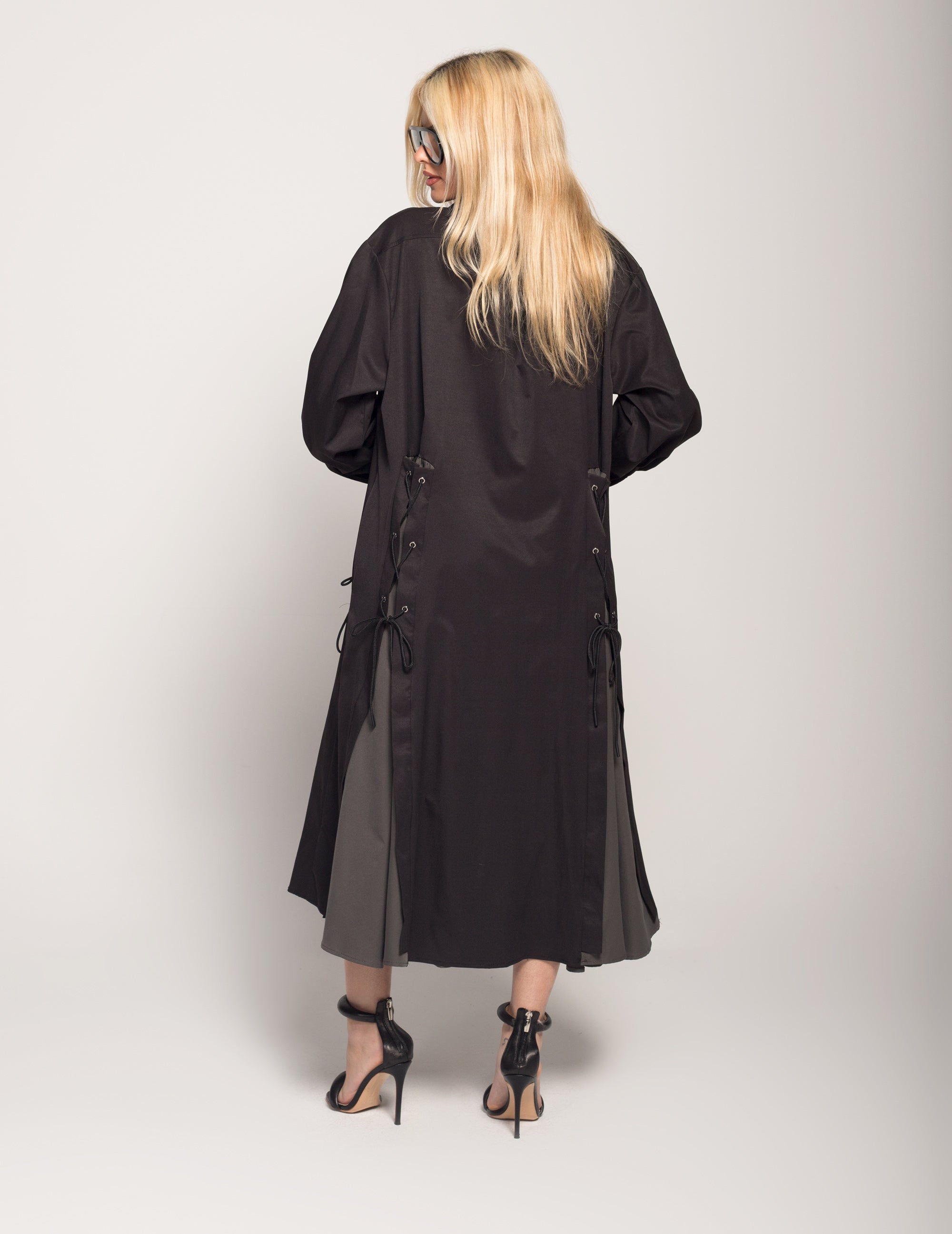 Vestido Longo Detalhe De Abertura Em Cinza Com Ajuste De Atilhos