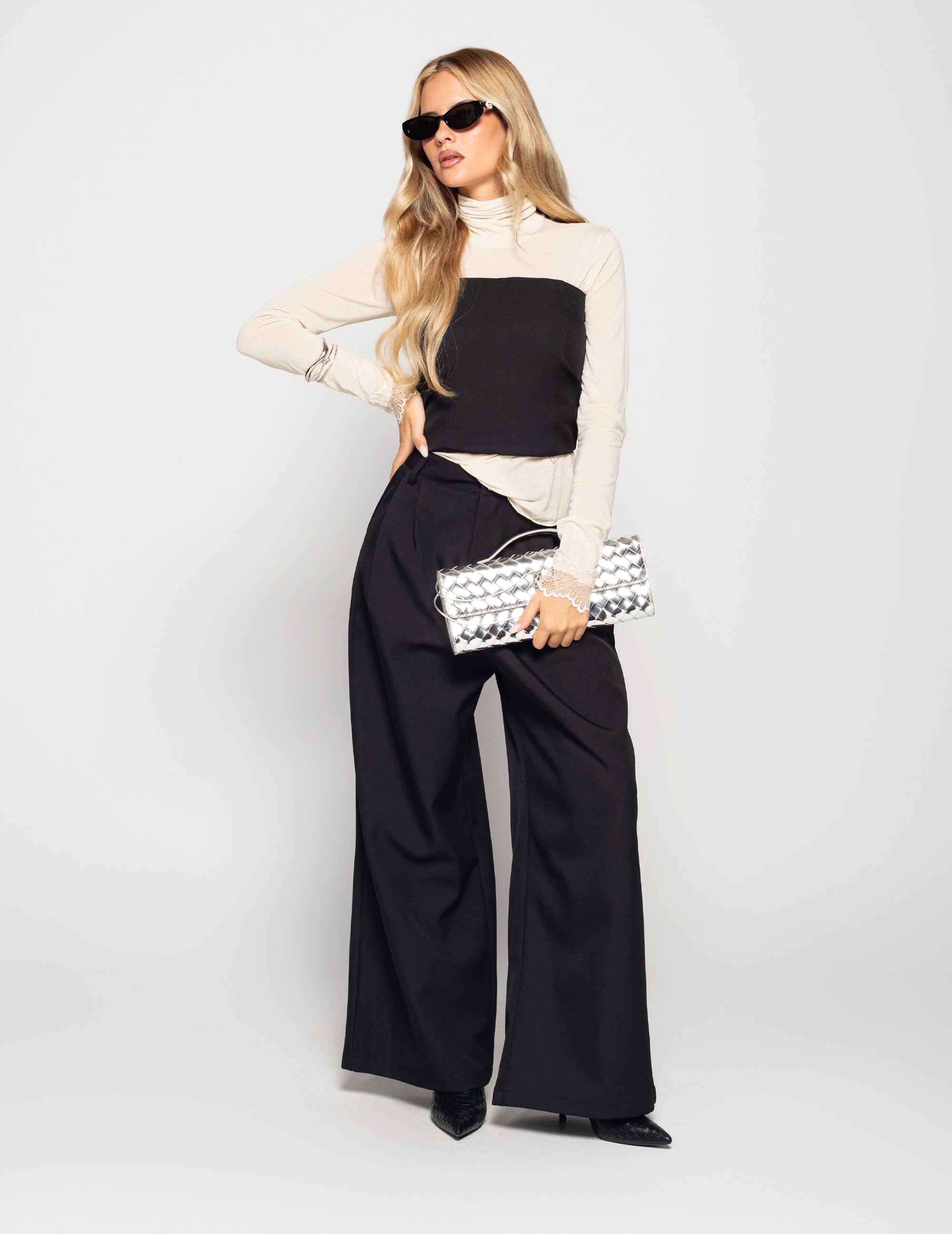 Sequined Shoulder Pad Half Neck Top