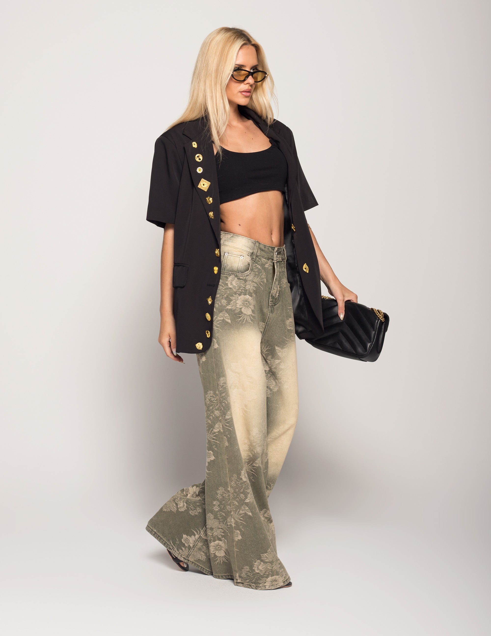 Calça Ti.Amo De Ganga Wide Leg Jacquard Brilhos