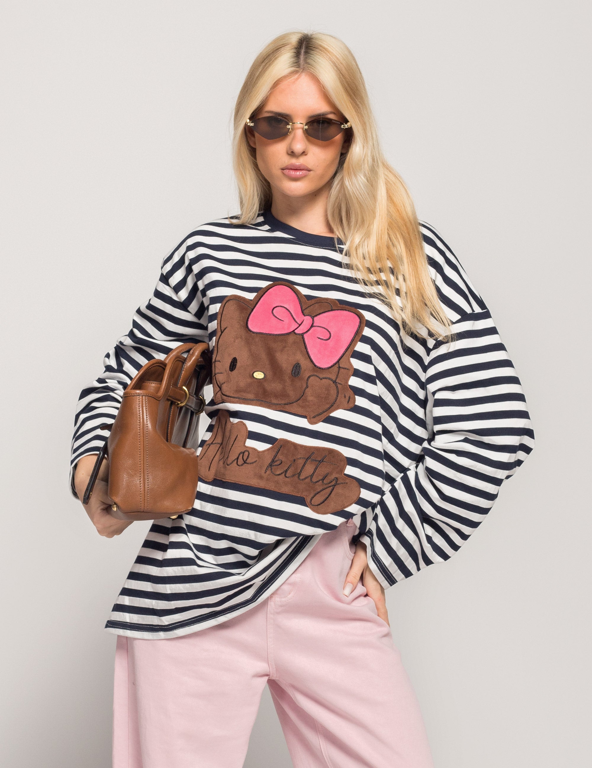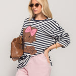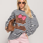 Sweat De Algodão Oversize Riscas Kitty